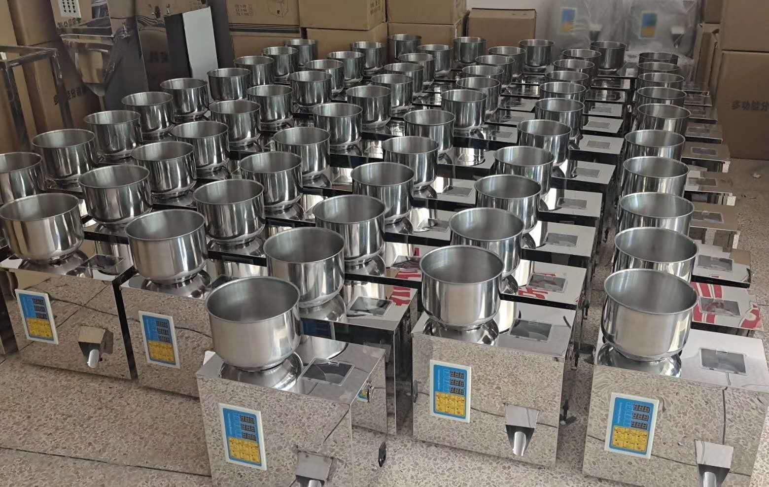 3、按開始鍵,分裝機(jī)即開始運(yùn)行,到達(dá)所到的重量后,嘀的一聲,用手去出料口感應(yīng)一下,物料會自動分裝下來。