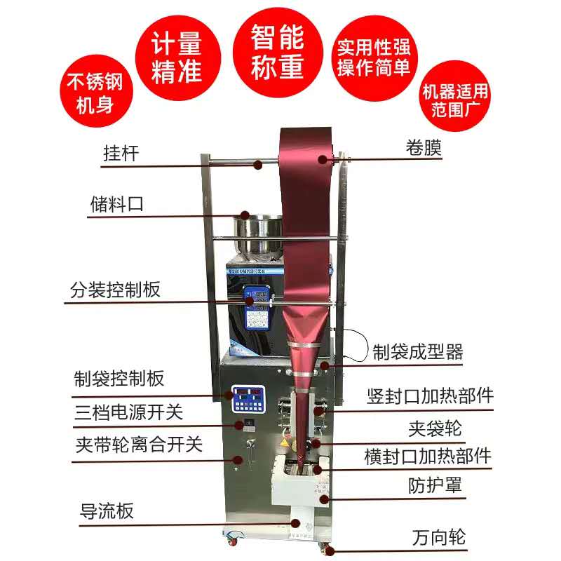 4.能自動完成制袋、計量、充填、封合、切斷、記數(shù)、打印批號等全部工作。